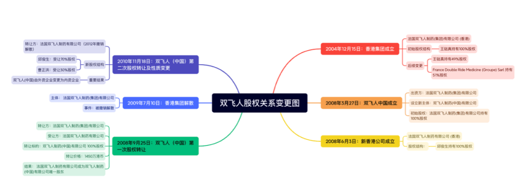 2004年时,一家名为法国双飞人制药(集团)有限公司的企业在香港成立,起初是由一名叫王础真的自然人百分百持股,之后一家法国企业也加入其中。