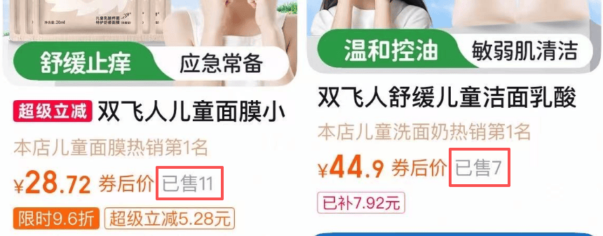 如今双飞人的淘宝旗舰店中,产品大致可以分为两类:一类是针对成人的双飞人系列,包括爽水、喷雾、清凉油等,以及一些全家适用的驱蚊产品;另一类是针对儿童的止痒护肤露、洁面、儿童面膜等,后者的销量并不出彩。
